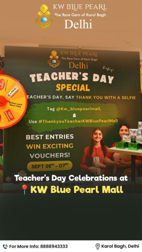🎉📚 𝐂𝐞𝐥𝐞𝐛𝐫𝐚𝐭𝐢𝐧𝐠 𝐓𝐞𝐚𝐜𝐡𝐞𝐫’𝐬 𝐃𝐚𝐲 𝐚𝐭 𝐊𝐖 𝐁𝐥𝐮𝐞 𝐏𝐞𝐚𝐫𝐥 𝐌𝐚𝐥𝐥! 📚🎉 🎉KW Blue Pearl Mall warmly invites all teachers to a Special Teacher’s Day Celebration 🎉 ✨ 5th, 6th & 7th September | 12:30 PM – 7 PM ✨ Special gifts of appreciation 🎁 ✨ Exclusive selfie points to capture memories 📸 ✨ An atmosphere filled with gratitude & respect ❤️ 𝐂𝐞𝐥𝐞𝐛𝐫𝐚𝐭𝐢𝐧𝐠 𝐓𝐞𝐚𝐜𝐡𝐞𝐫’𝐬 𝐃𝐚𝐲 𝐚𝐭 𝐊𝐖 𝐁𝐥𝐮𝐞 𝐏𝐞𝐚𝐫𝐥 𝐌𝐚𝐥𝐥! 🙌 Special Thanks for the valuable contribution of :- 𝐌𝐫. 𝐑𝐢𝐬𝐡𝐢𝐤𝐞𝐬𝐡 𝐊𝐮𝐦𝐚𝐫 𝐌𝐬. 𝐏𝐫𝐢𝐲𝐚 𝐒𝐡𝐮𝐤𝐥𝐚 𝐌𝐬. 𝐒𝐡𝐫𝐮𝐭𝐢 𝐌𝐬. 𝐈𝐬𝐡𝐚 𝐌𝐬. 𝐌𝐮𝐬𝐤𝐚𝐧 𝐌𝐬. 𝐀𝐧𝐮𝐬𝐡𝐤𝐚 #KWBluePearlMall #TeachersDay #ThankYouTeachers #CelebratingTeachers #SpecialCelebration #TeachersDeserveTheBest